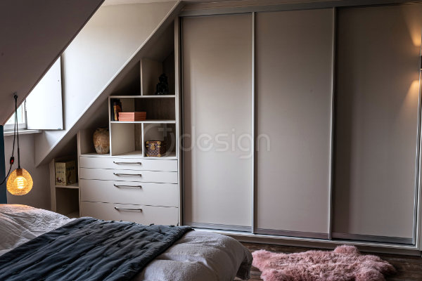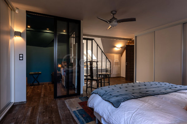 Notre agence d’architecture d’intérieur a accompagné les propriétaires dans la reconfiguration complète de leur espace nuit, situé sous combles.