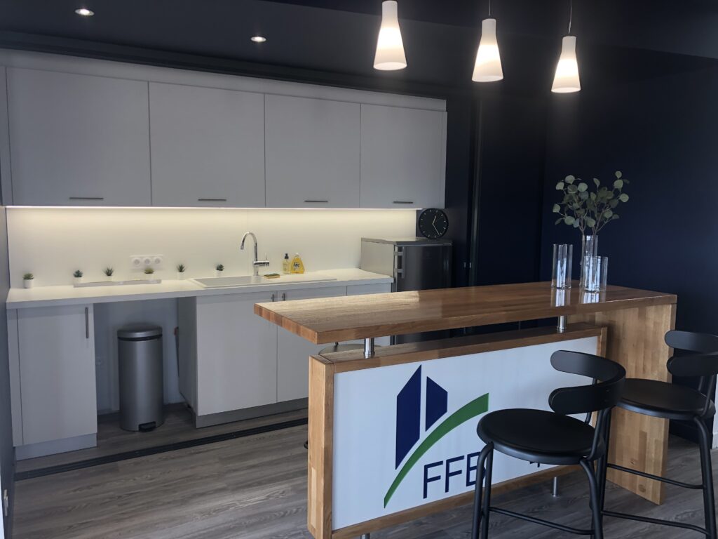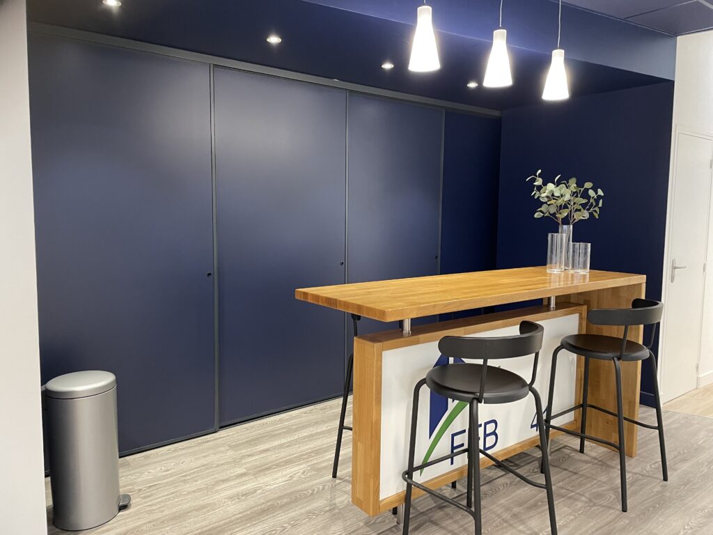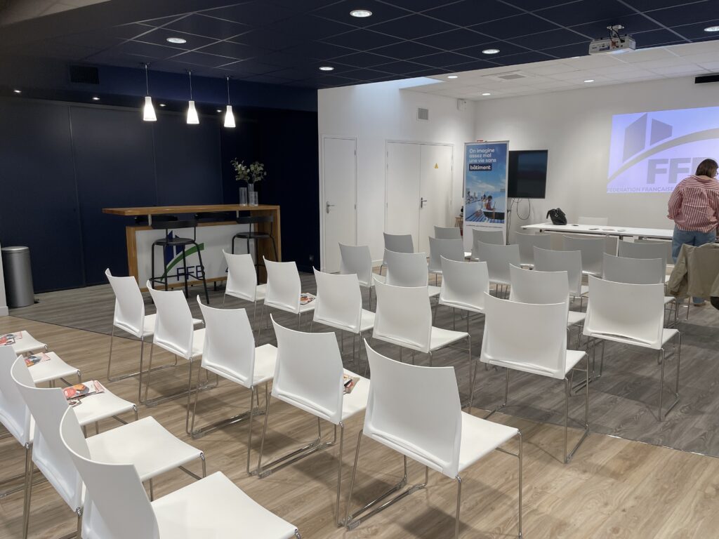 La Fédération Française du Bâtiment de Blois a confié à OPLUSDESIGN la conception et l’aménagement de sa salle polyvalente, un espace devant répondre à trois usages : séminaire, amphithéâtre et cocktail. L’objectif était de créer une organisation fonctionnelle et modulable, adaptée aux usages de la FFB.
