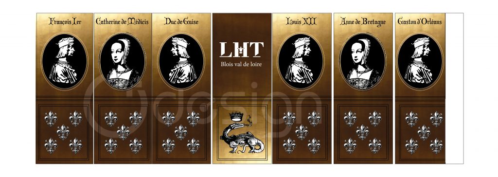 Une proposition d’habillage décoratif a été développée pour les cloisons mobiles, afin de renforcer l’identité du lieu : portraits, motifs et éléments graphiques en lien avec Blois et son patrimoine. Une solution qui permettrait à l’espace de gagner en caractère, en cohérence et en fonctionnalité.