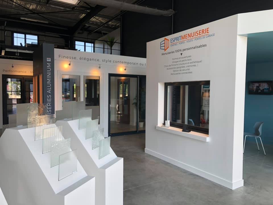 Pour Esprit Menuiserie, l’intervention d’O+design a consisté à conceptualiser un show-room structuré et lisible, où chaque menuiserie peut être découverte dans des conditions proches du réel. L’espace, très haut de plafond, a été repensé pour ramener le regard à hauteur humaine, grâce à des luminaires grand format et un travail sur les volumes permettant de recentrer l’attention sur les produits. L’agencement conserve l’existant tout en le valorisant, offrant une circulation simple et intuitive au sein d’un environnement chaleureux et technique à la fois.