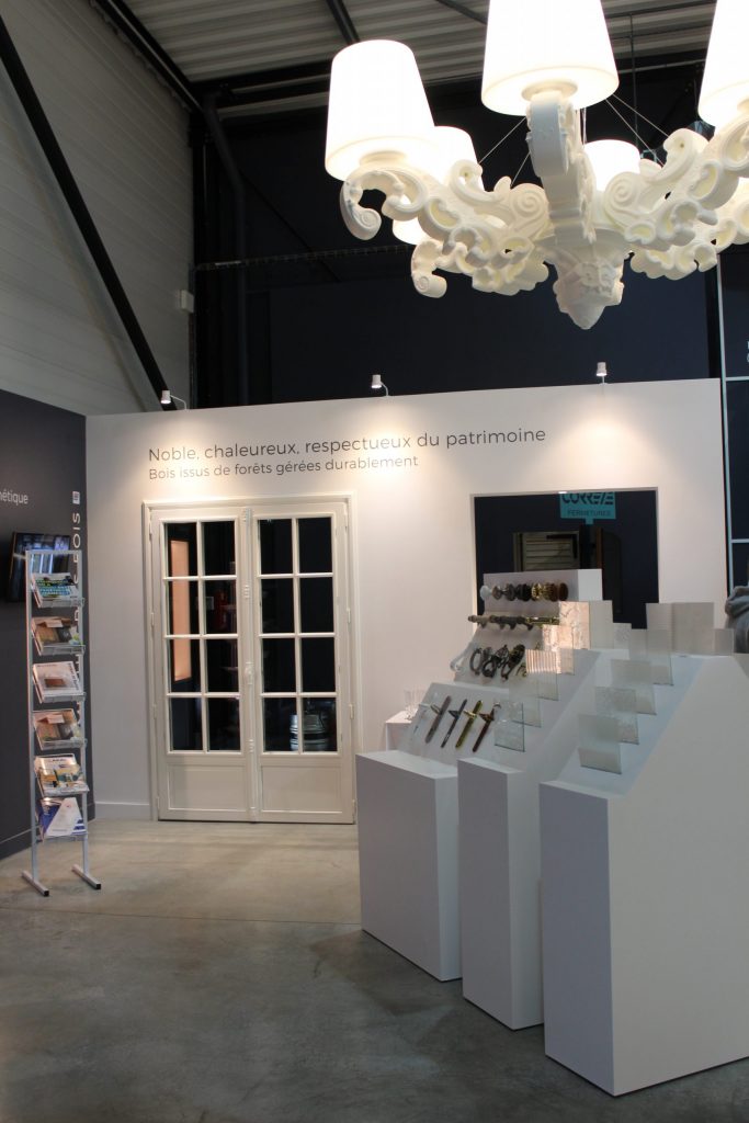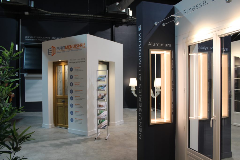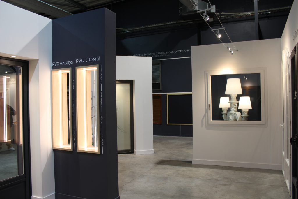 La décoration et l’aménagement intérieur ont été imaginés pour mettre en lumière les portes, fenêtres, baies,stores de la marque JANNEAU en soulignant leurs particularités techniques. Plutôt que de multiplier les supports, l’accent a été mis sur des présentations facilement compréhensibles, permettant aux visiteurs de comparer d’un coup d’œil les matériaux, finitions et performances. Les contrastes de matières, les éclairages intégrés et l’ajout de supports sur mesure créent un décor à la fois professionnel et accessible. L’ambiance est volontairement simple, lisible et cohérente, pour laisser place aux produits et au conseil des équipes.